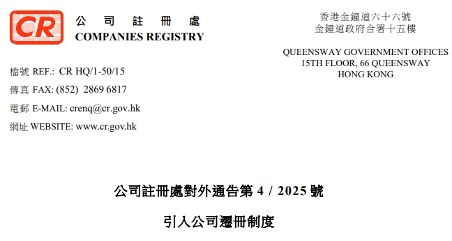 為鞏固香港國(guó)際商業(yè)及金融中心的地位,政府通過(guò)《2025年公司(修訂)(第2號(hào))條例》(下稱《修訂條例》)引入公司遷冊(cè)制度。
