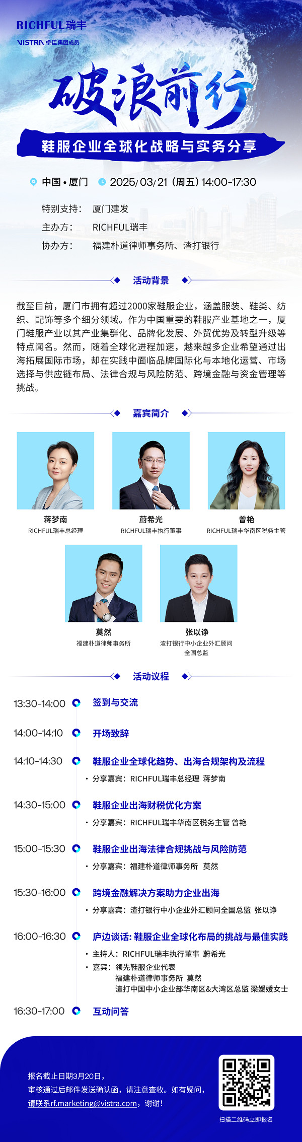 邀請函 | 3月21日 廈門 | 破浪前行——鞋服企業全球化戰略與實務分享…
